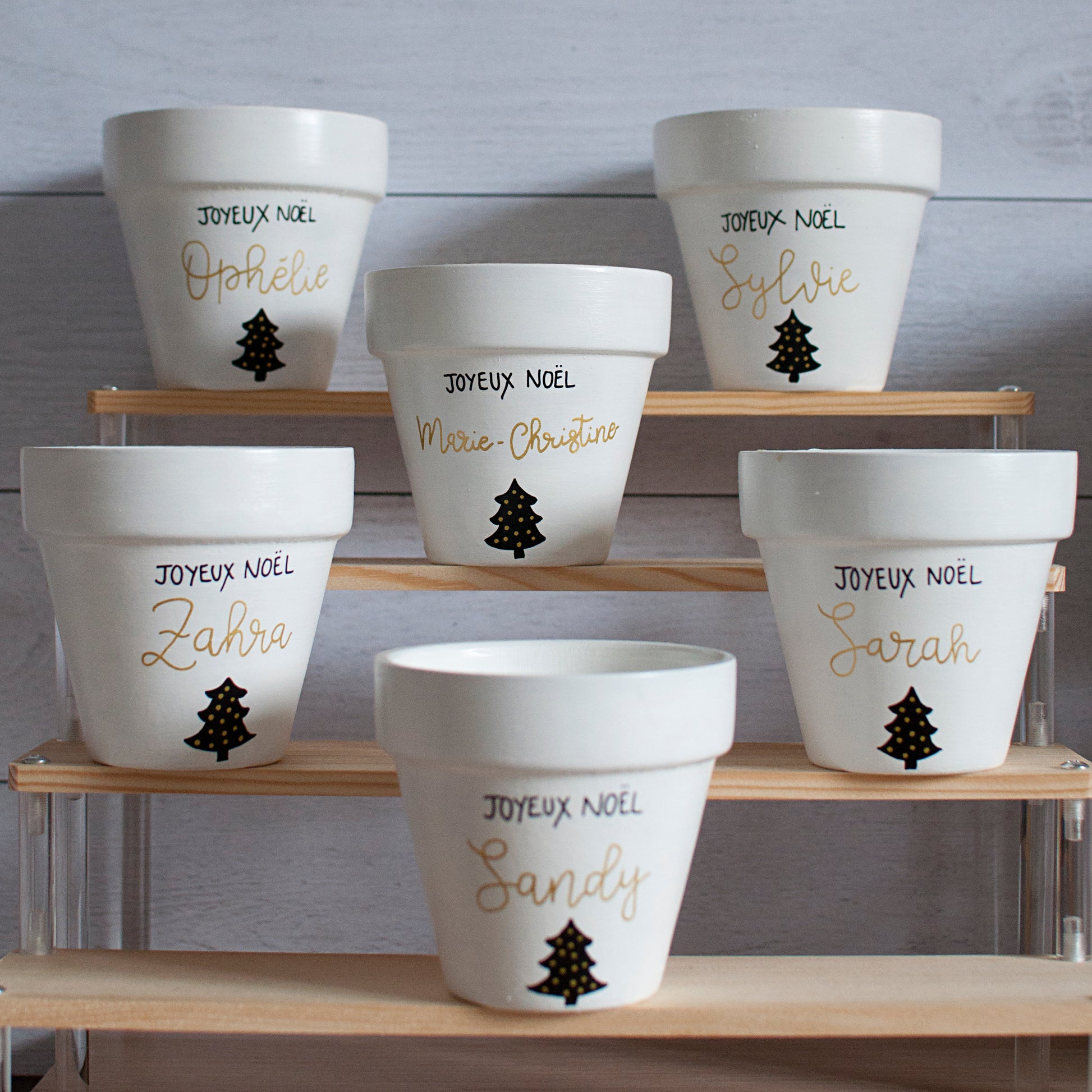 Bougie en terre cuite 9 cm : Joyeux Noel Maîtresse / Nounou / prénom à personnaliser