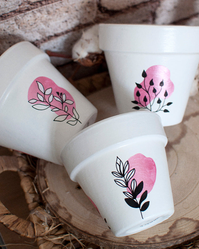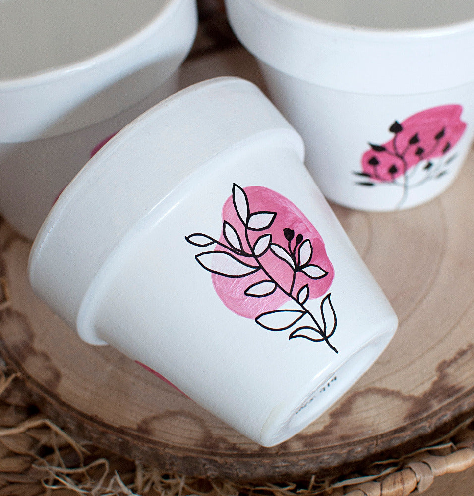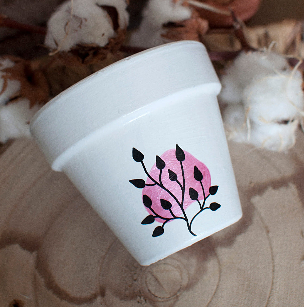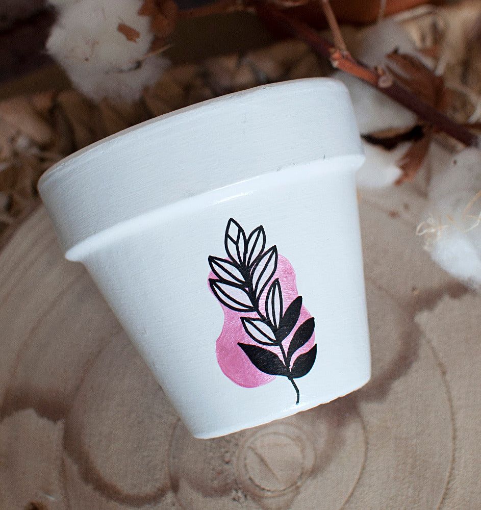 Pot en terre cuite entièrement peint à la main.